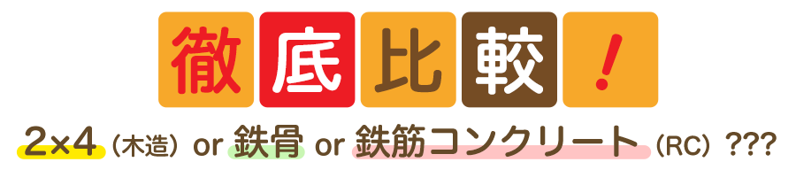 では、なぜ弊社が2×4 ツーバイフォーを採用するのか、ここで、2×4と鉄骨、鉄筋コンクリートの3つ工法を比較していましょう!